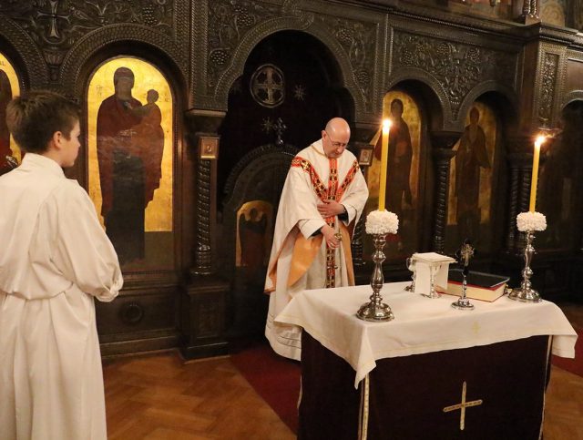 Takođe, radi postizanja atmosfere kolektivnog transa, pošto anglikanska (protestantska) kadionica nema praporke (i kraća je), taj sasud je pozajmljen iz skevofilakiona patrijaršijske kapele.
