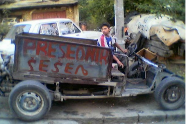 Predsednički kandidat Vojislav dr Šešelj, angažovao je Rome koji skupljaju staro gvožđe da ga preko megafona promovišu.