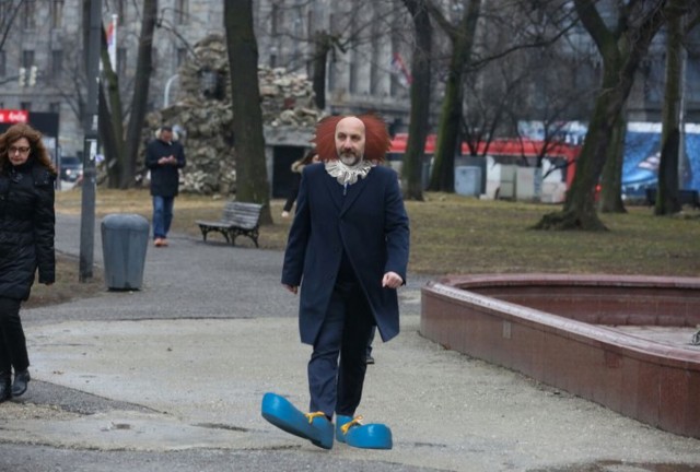 Reporter Zicera se slučajno našao u ranim jutarnjim časvima na putu kojim je Janković prolazio do ove ustanove i uspeo da ga fotografiše u klovnomskom odelu.