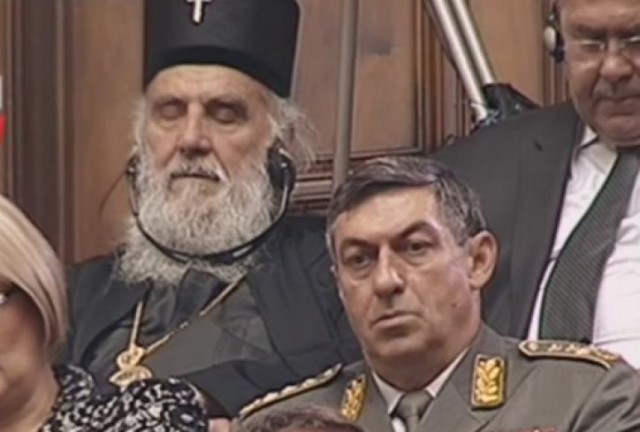 Već u prvim minutima iscrpnog Vučićevog ekspozea, patrijarh SPC Irinej, utonuo je u dubok i mističan san. Tokom šest sati ekspozea (koje je njegova svetost Irinej, uglavnom, prespavao), u snu mu se javio prethodni patrijarh Pavle, koji mu je tom prilikom prorekao više stotina događaja u bliskoj budućnosti.
