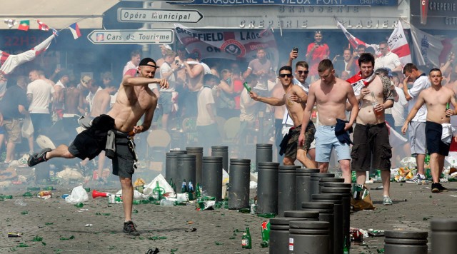 Ruski navijači kada su videli engleske počeli su da provociraju, no engleski navijači su se trudili da budu suzdržani jer su prethodnih dana veoma gadno prošli u tučama sa Rusima.